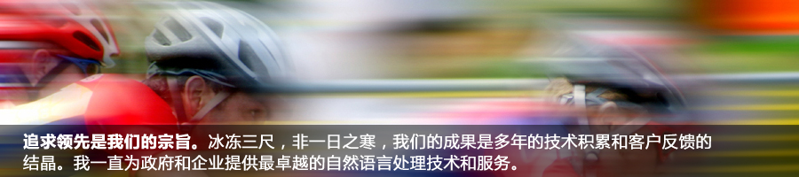 自從成立以來,我們?yōu)榭蛻籼峁└咝Ш椭悄芑男畔⑻幚砉ぞ吆妥稍兎?wù)。在這個(gè)信息爆炸的時(shí)代,如何讓互聯(lián)網(wǎng)上和企業(yè)內(nèi)部的海量信息為我們帶來更多的價(jià)值需要高度智能化的信息處理工具。我們提供的技術(shù)能夠高效并且準(zhǔn)確的對大量文本信息進(jìn)行處理、檢索、挖掘、翻譯等工作,并可方便地與信息系統(tǒng)的其他模塊進(jìn)行整合。